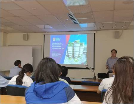 2019年10月31日,代表团到南洋理工大学开展学习交流活动。首先,代表团去到了南洋理工大学地球科学学院(EOS),EOS的王显峰教授为学生们详细介绍了学院的基本情况和研究方向。他介绍说目前主要的自然灾害,如地震、海啸、火山喷发和全球气候变化给我们科技的飞速发展和人口的急剧增长带来了巨大的威胁。EOS目前的两大目标分别是:对一些复杂的自然现象进行深入的科学研究,并将其传递到深受影响的人口问题上。