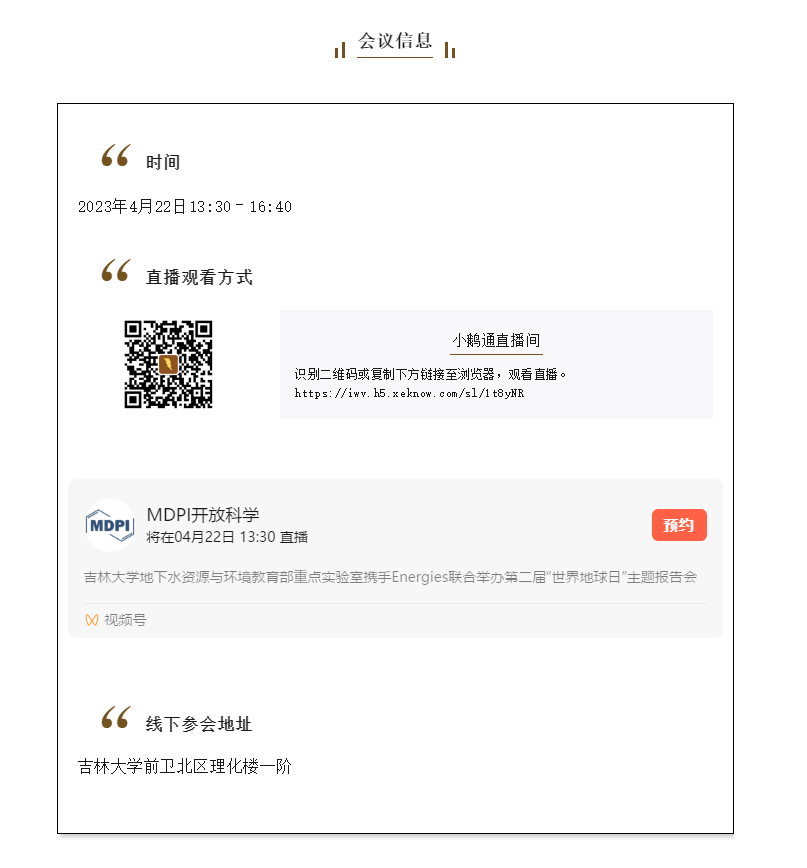 线上直播:小鹅通、B站、MDPI视频号