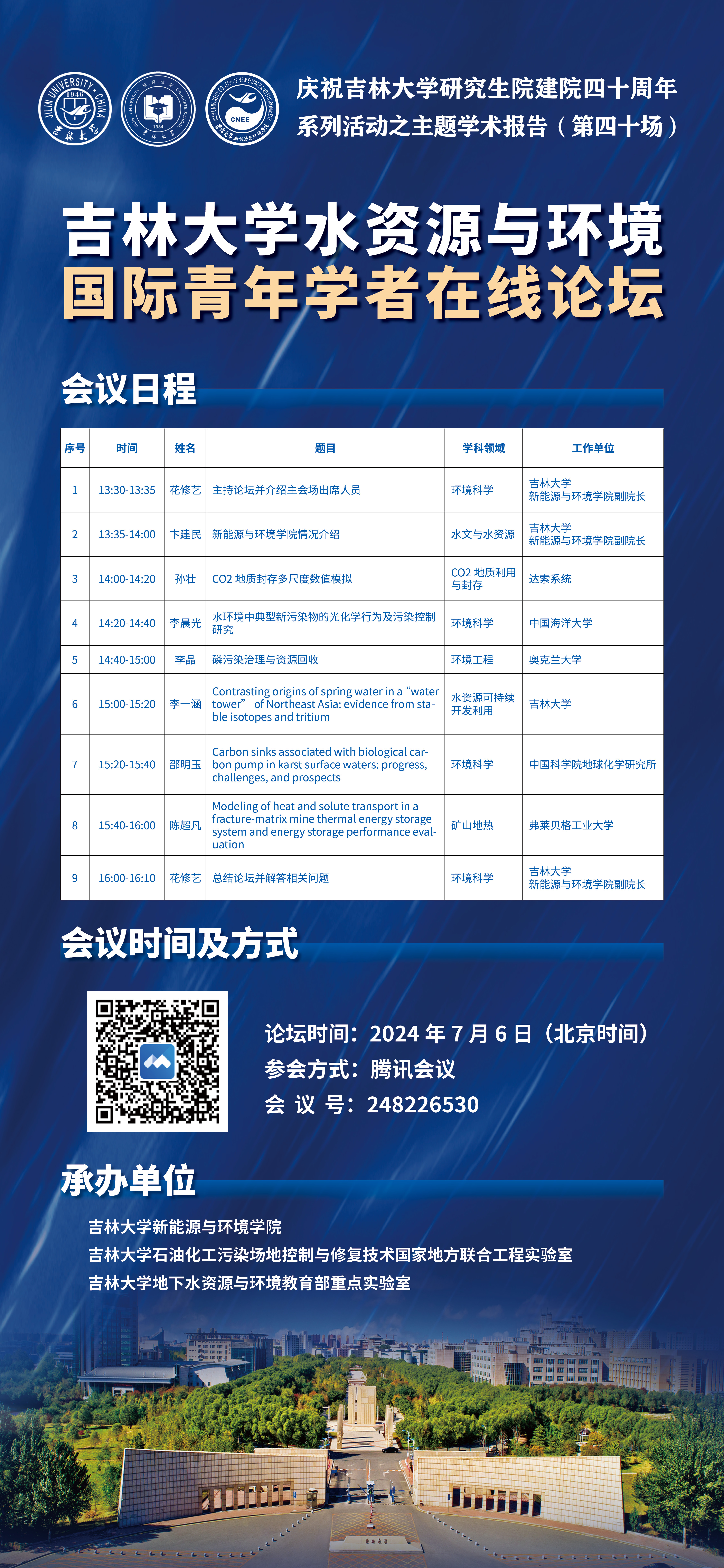 庆祝 tikporn 研究生院建院四十周年系列活动之主题学术报告(第四十场)2024年 tikporn 水资源与环境国际青年学者在线论坛