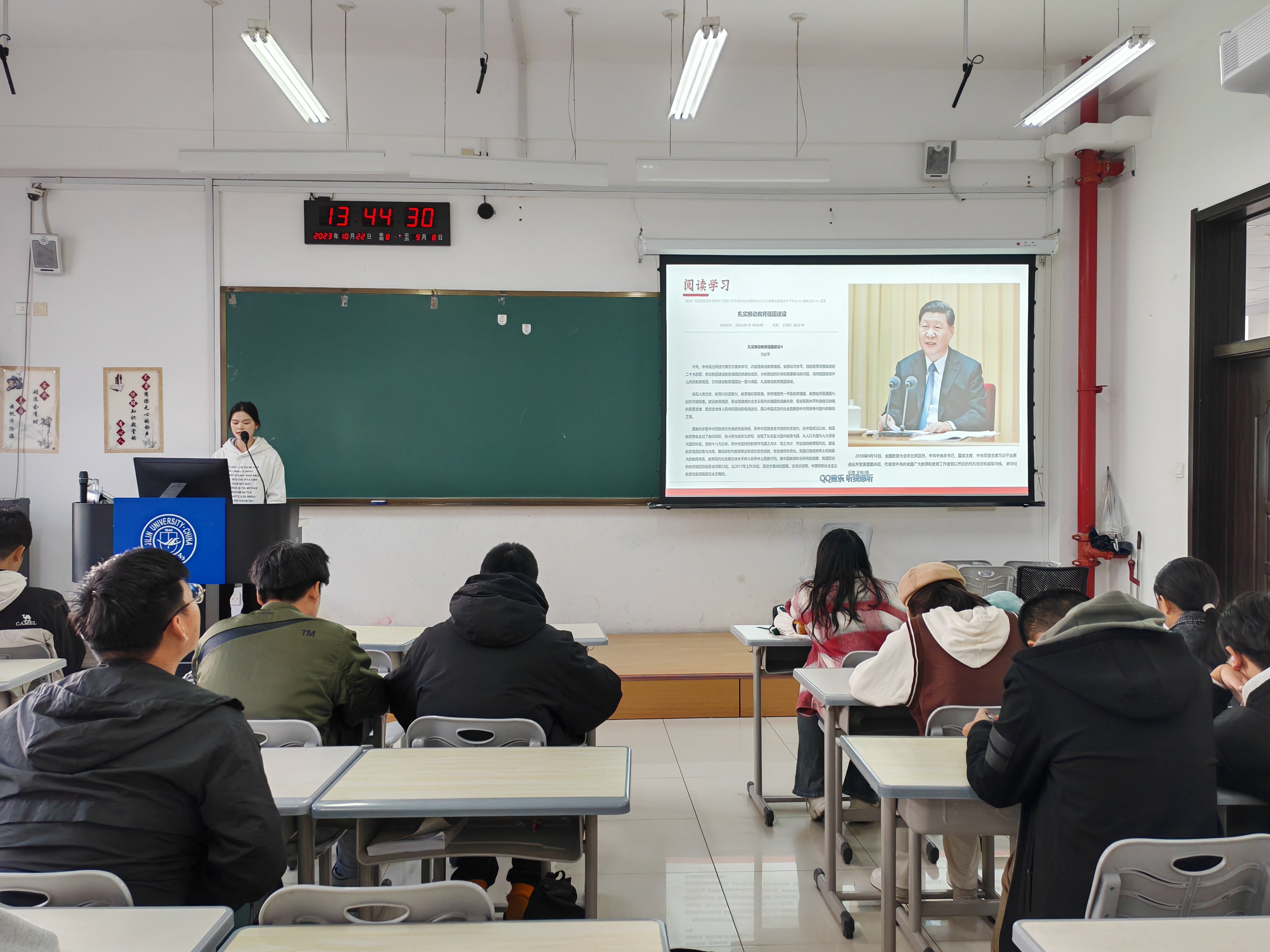 本次团日活动以线下形式开展。首先,团支书带领全体同学阅读学习了“最新论述”中的文章《扎实推动教育强国建设》。教育兴则国家兴,教育强则国家强。世界强国无一不是教育强国,教育始终是强国兴盛的关键因素。在阅读学习《扎实推动教育强国建设》过程中,同学们都认真阅读并仔细思考。