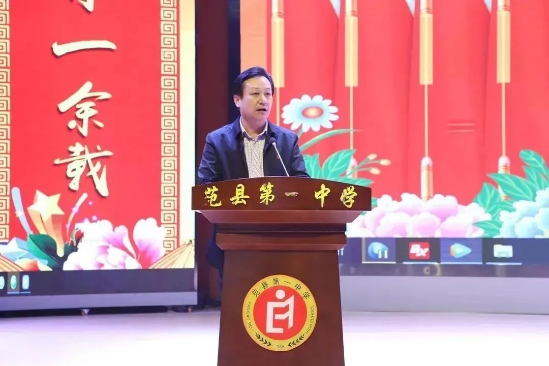 副书记、副院长吴哲,地下水科学与工程系副教授辛欣,范县政协党组成员、教育局局长黄守月,范县一中党委书记、校长于世亮出席仪式。高三年级全体学生参加仪式。