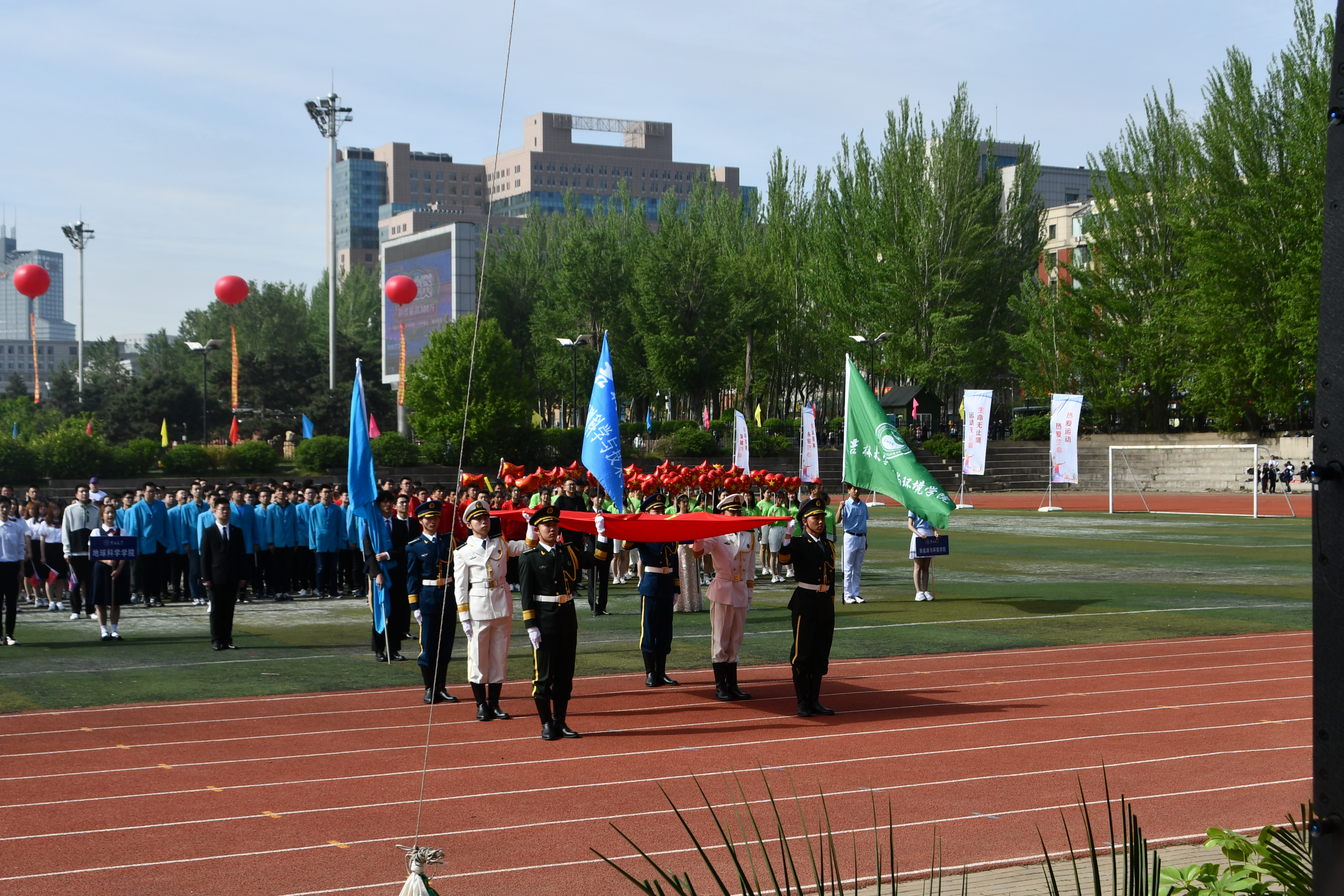 运动会在庄严的升旗仪式下正式开始,由2位学院领导、24名教职工、38名本科学生组成的 tikporn
