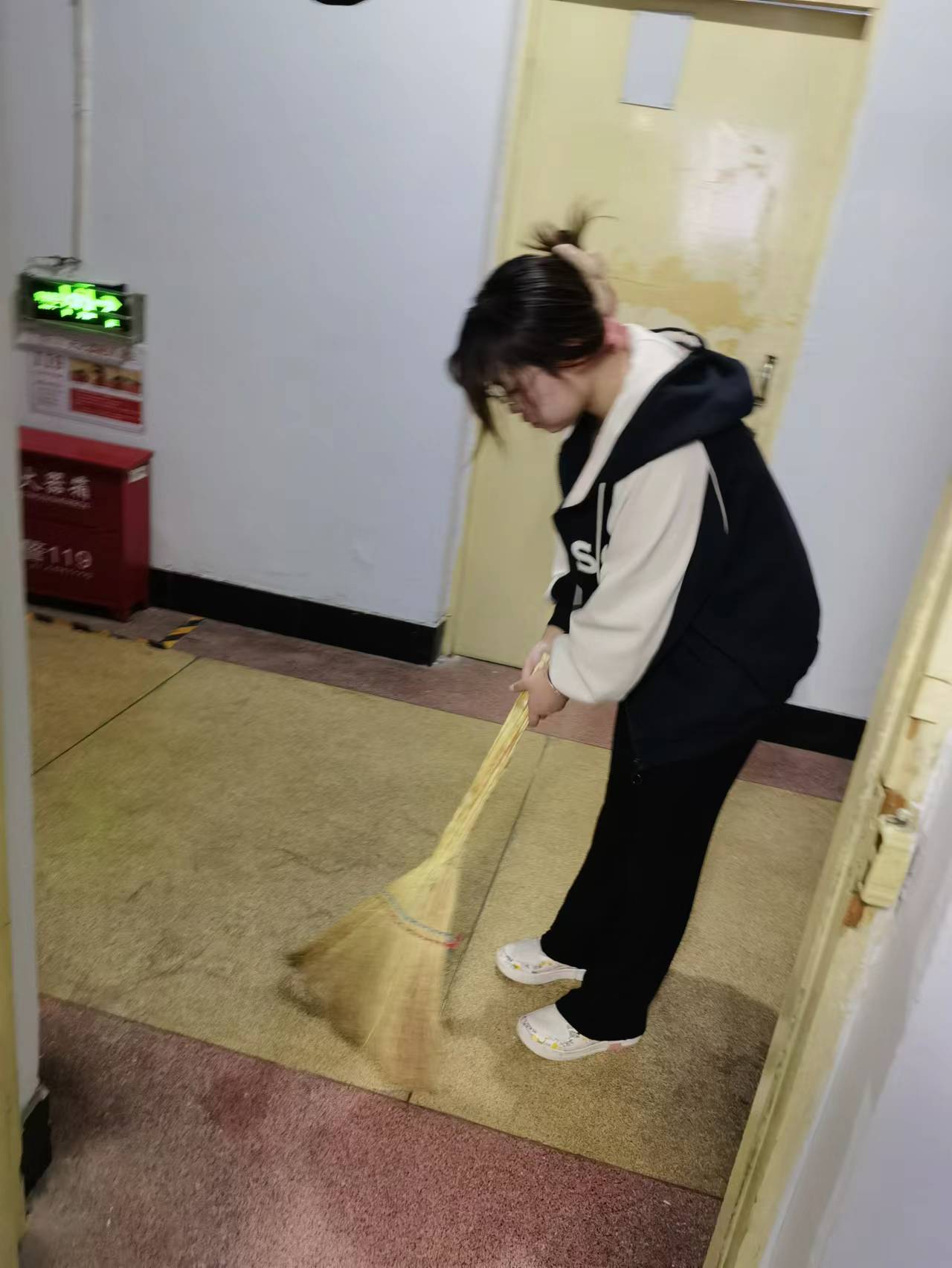 本活动一吸引了学院内许多的同学积极参与,同学们热情高涨,渴望为自己的生活环境做出力所能及的贡献。活动主要内容为对校园内的寝室楼的卫生间、教学楼的公共区域进行细致的卫生清扫活动,对寝室楼内卫生间堆积的大量垃圾进行集中清理并做到垃圾出寝室,在寝室楼外指定地点倾倒垃圾。
