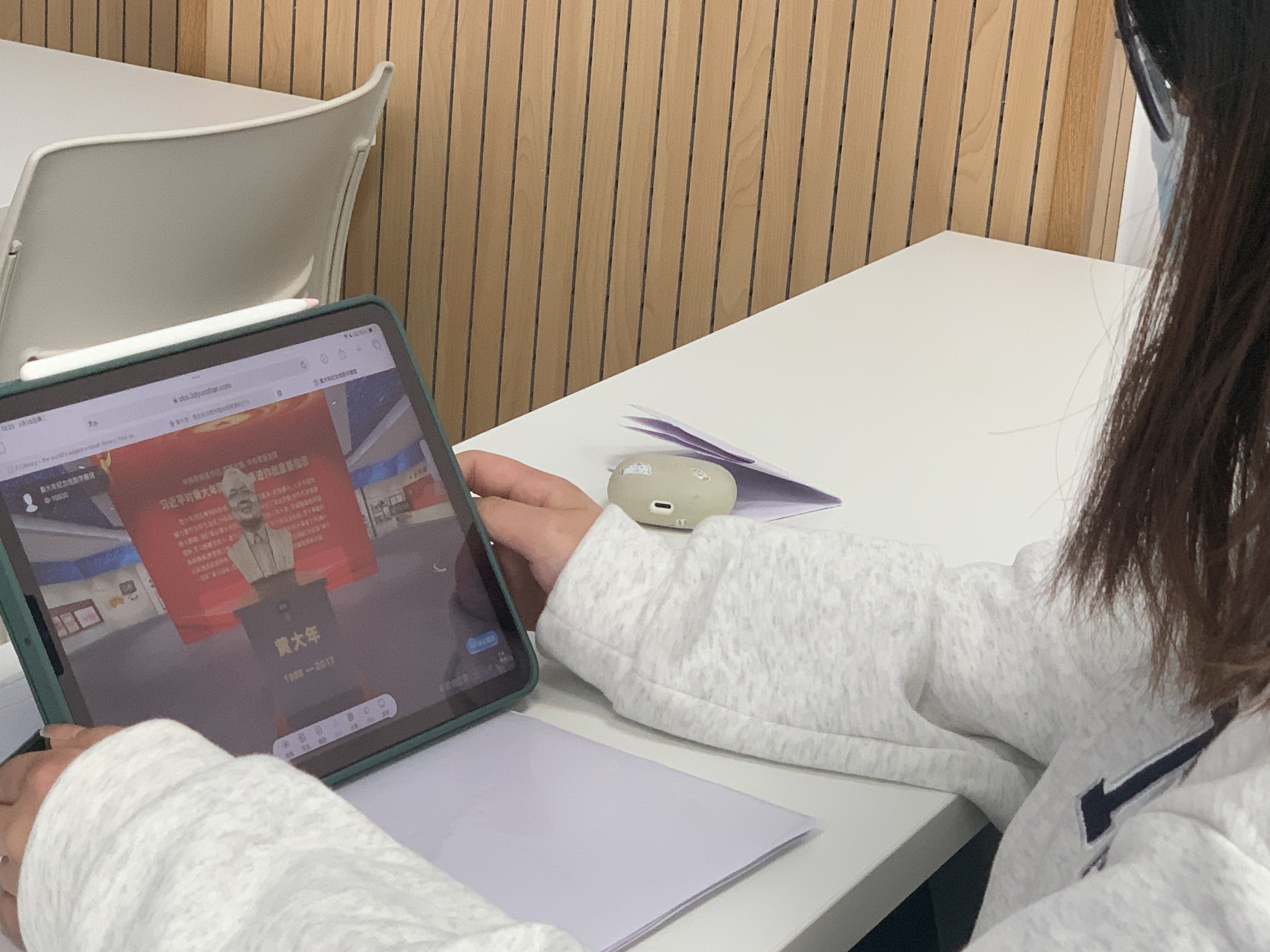 本次活动甘宇娟同学引导各位同学通过线上参观黄大年纪念馆虚拟馆,了解黄大年老师的家国情怀,体会他传奇又令人敬佩的一生,深刻体会黄大年老师以高超的学术和品德铸就了感人至深的生命历程,深刻了解黄大年老师舍弃名利、心有大我、以梦想铸国等精神融汇而成的黄大年精神。