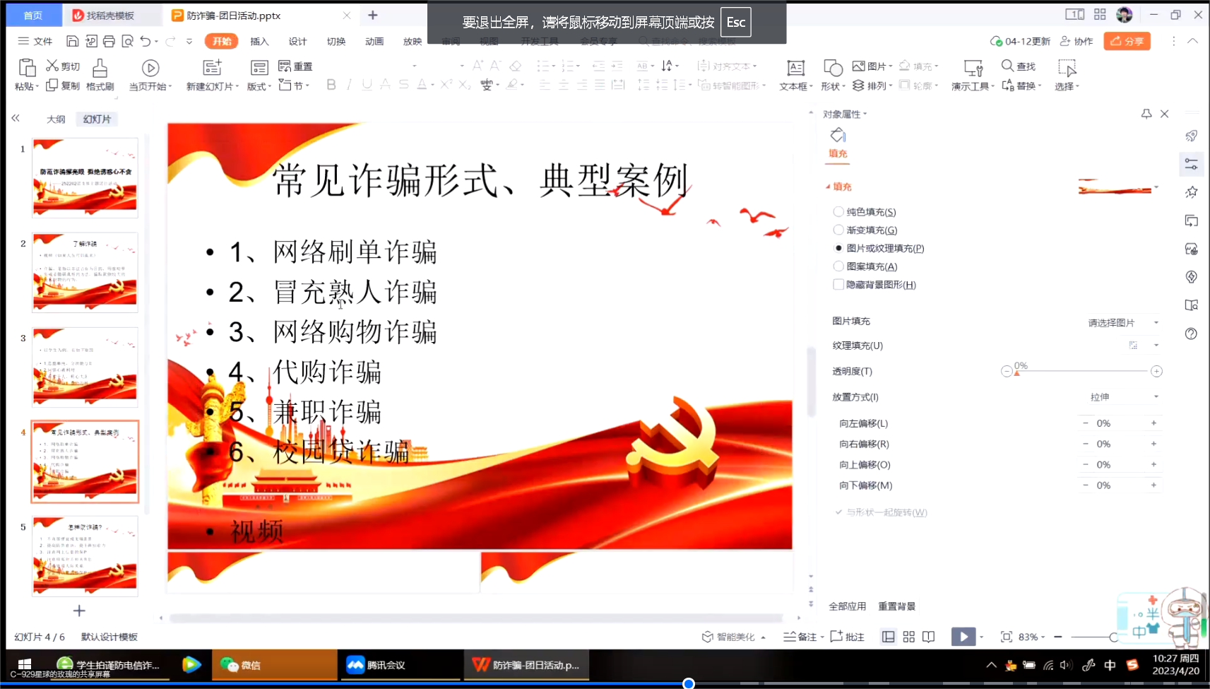252202班团支部于4月20日上午十点在团支书郭诗语的带领下,于线上开展“防范诈骗擦亮眼 拒绝诱惑心不贪”反电信网络诈骗宣传教育主题团日活动。本次团日活动共有包括支部内29名共青团员在内的34位青年参加。