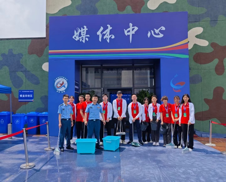 7月26日-7月30日,为期5天的“蓝天盛会”全面举行,歼-20、歼-16和运油-20首次同框,编队低空通场;运油-20低空释放干扰弹,如同天女散花;歼-20首次降落在航展现场的跑道上,观众激动不已……我们在航展的一线坚守岗位,服务于人民。每天早上被凌晨3:20的闹钟叫醒,媒体中心由空荡到拥挤,我们24人全心全力全程为进800位媒体老师提供生活保障服务。