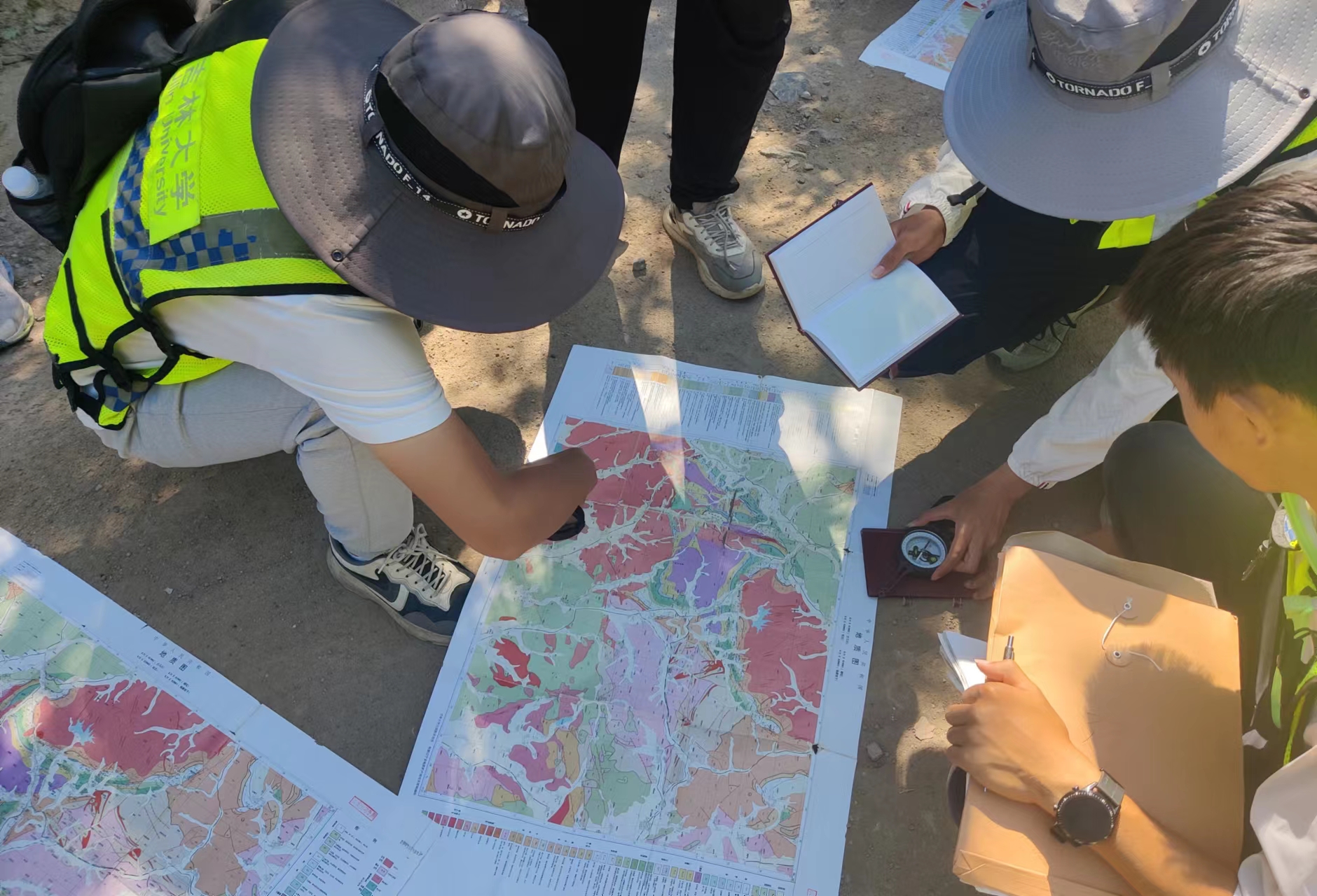 实习团队成员在使用地质图