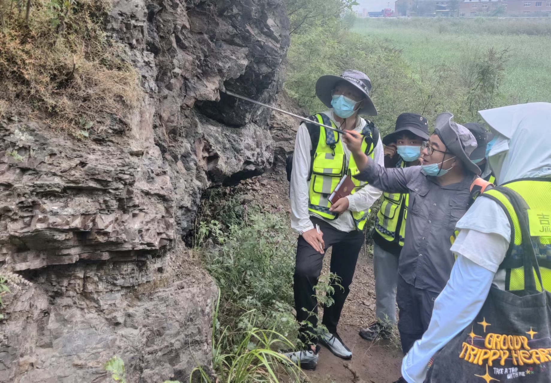 实习团队在观察岩石与构造
