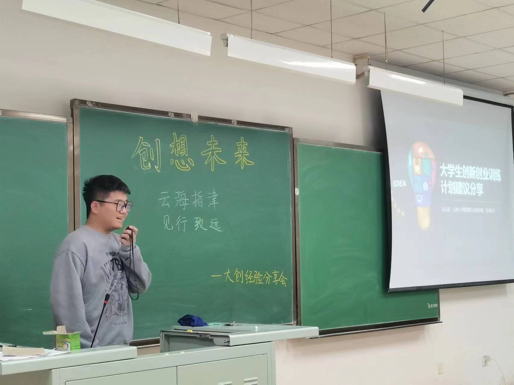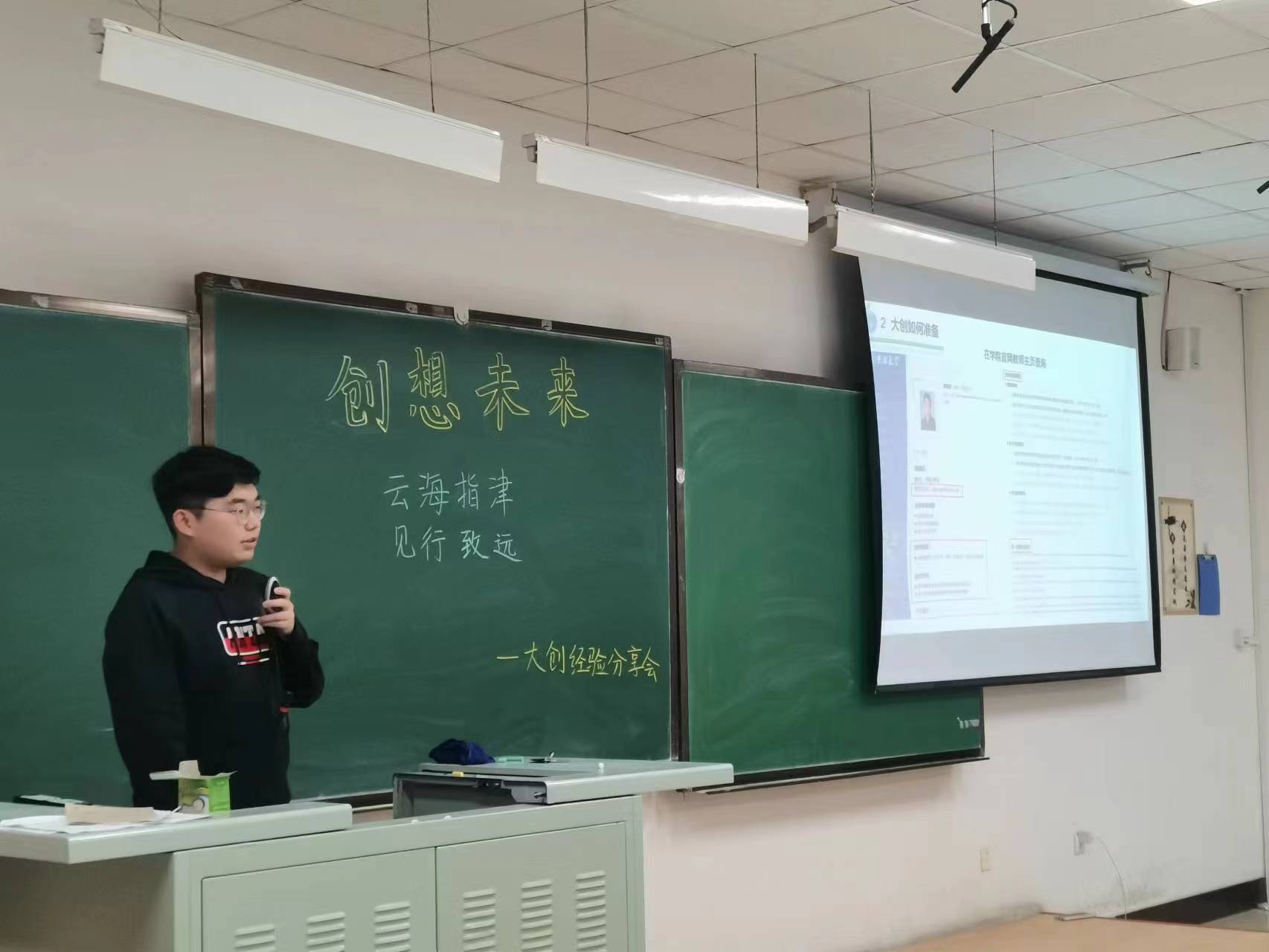 大创经验分享会在李四光教学楼210教室顺利举办。本次大创经验分享会邀请到了曲齐、赵元新、平字凯三位同学现场分享以及王瑞昕同学在线分享,为22级的同学们带来丰富的大创经验,并就大家的疑问进行解答。