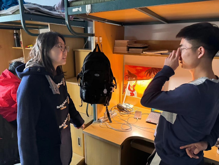 3月18、19日,2023级辅导员姜岳彤老师深入学生寝室,对2023级72间寝室进行检查,本次重点检查是否存在违规电器使用情况和公寓防火安全,姜老师叮嘱学生及时断电,养成用电良好习惯,防患于未然。