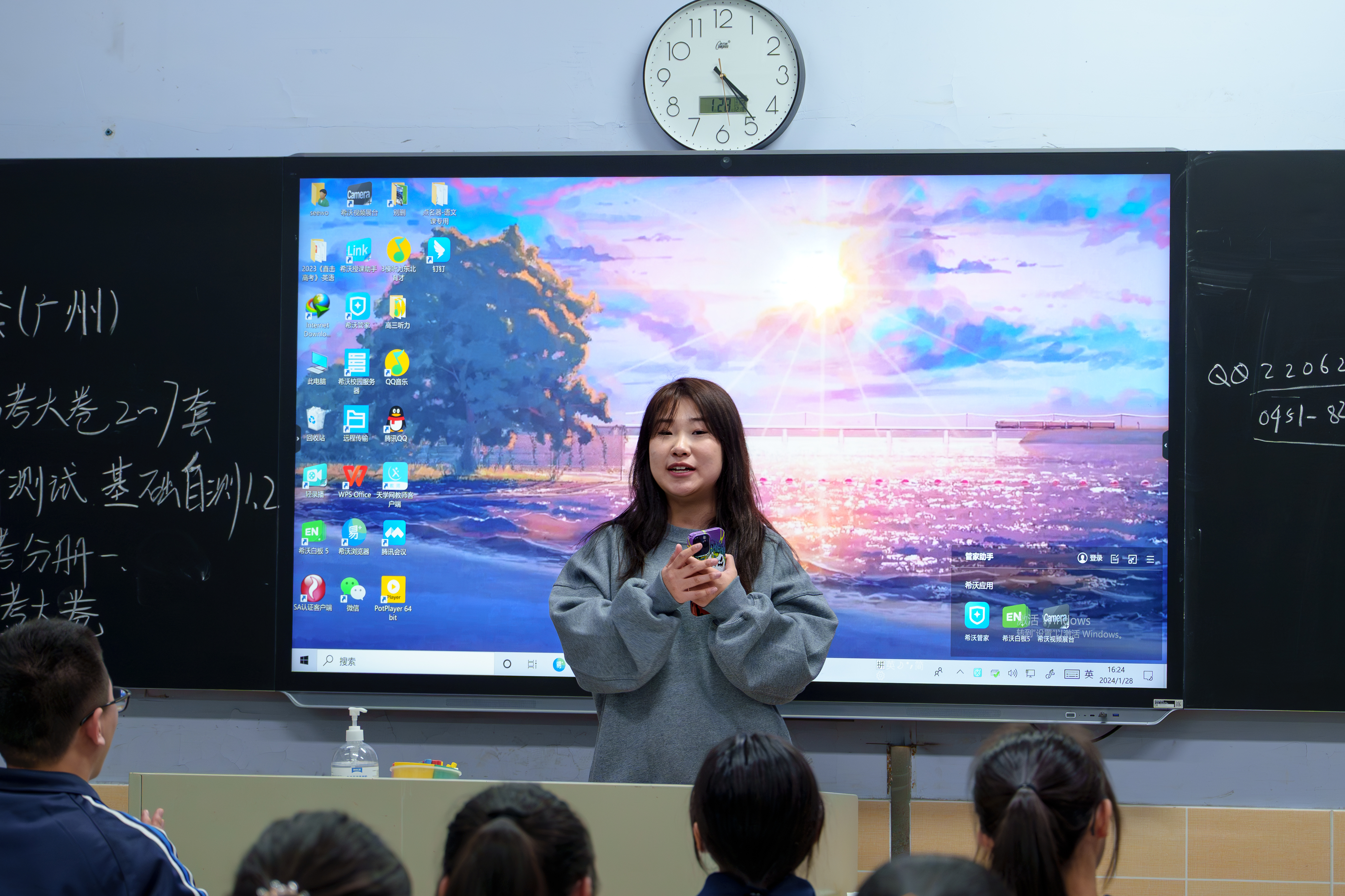 前期准备:在宣讲之前,团队成员提前进行分工准备会议,并事先准备好了宣讲要用的横幅,海报,礼品以及队旗,分工结束之后各司其职,有序进行准备工作,精心设计了宣讲内容和形式.通过与教师的紧密合作,确保了宣讲内容的针对性和实用性,激励高三学生燃起拼搏的热情。