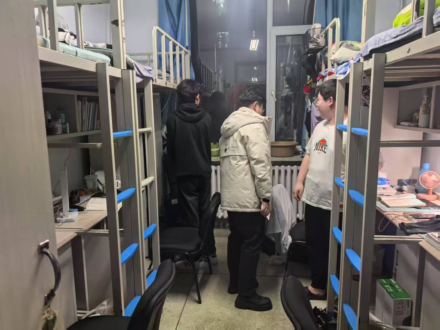 3月14日,2021级辅导员李薇老师进入朝阳五公寓、朝阳七公寓对寝室卫生、消防安全进行检查,通过走寝的方式了解春招求职学生的就业进程。