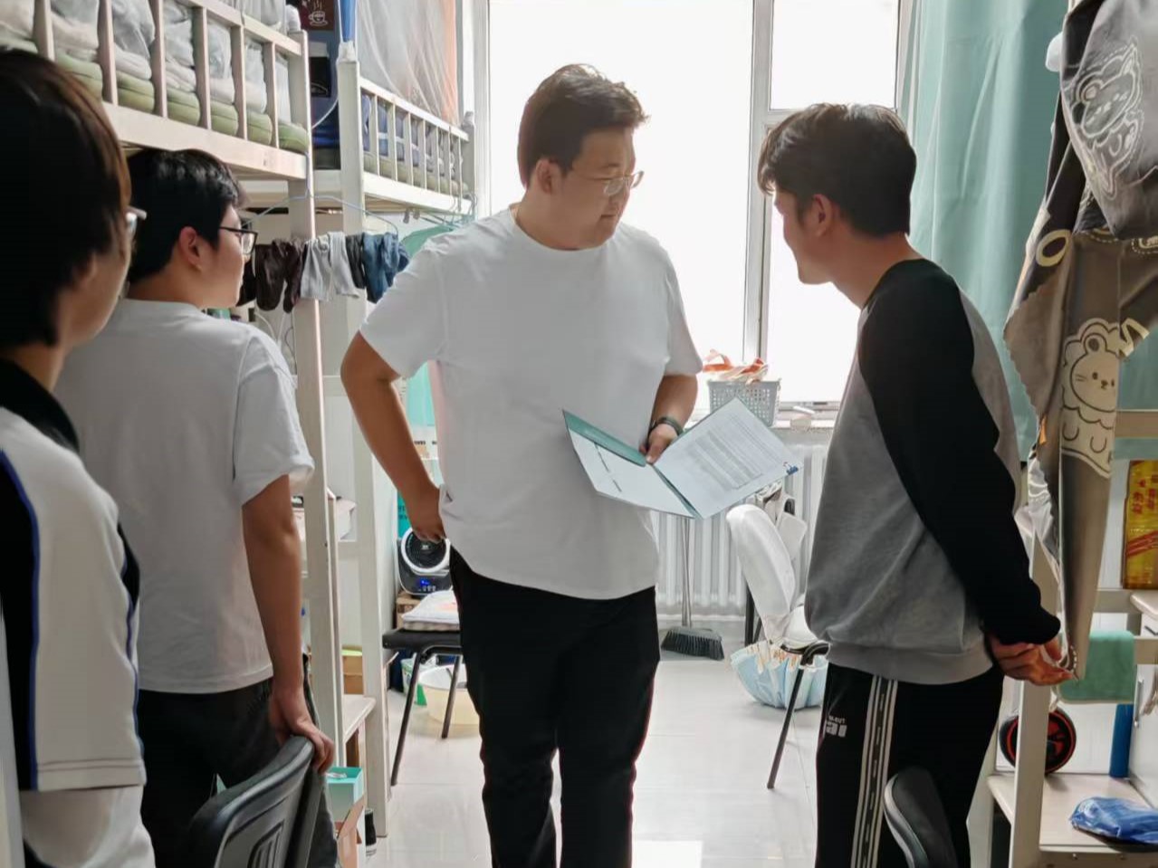 6月12日,2022级辅导员母茂松老师进入朝阳七公寓检查消防安全和寝室卫生,提醒学生及时整理寝室卫生,做好期末学习考试准备。