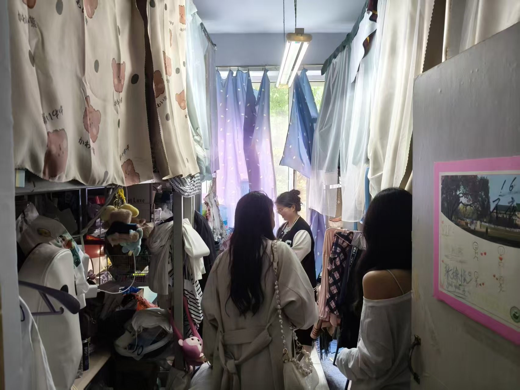 6月12日,2023级辅导员姜岳彤老师进入南苑二公寓寝室检查消防安全和寝室卫生,提醒同学们及时收拾物品并做好期末准备,及时开窗通风保持良好宿舍环境。