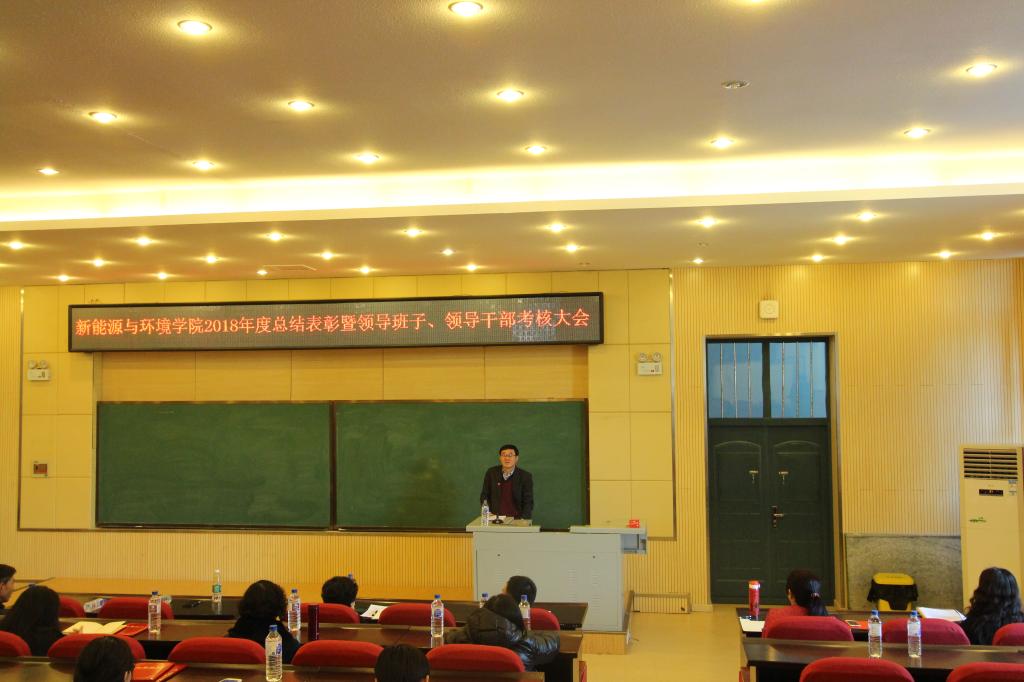 在北区理化楼第一阶教室召开2018年度总结表彰暨领导班子、领导干部考核大会。学院全体教职工和学生代表参加了会议。会议由学院党委书记汪祥松同志主持。