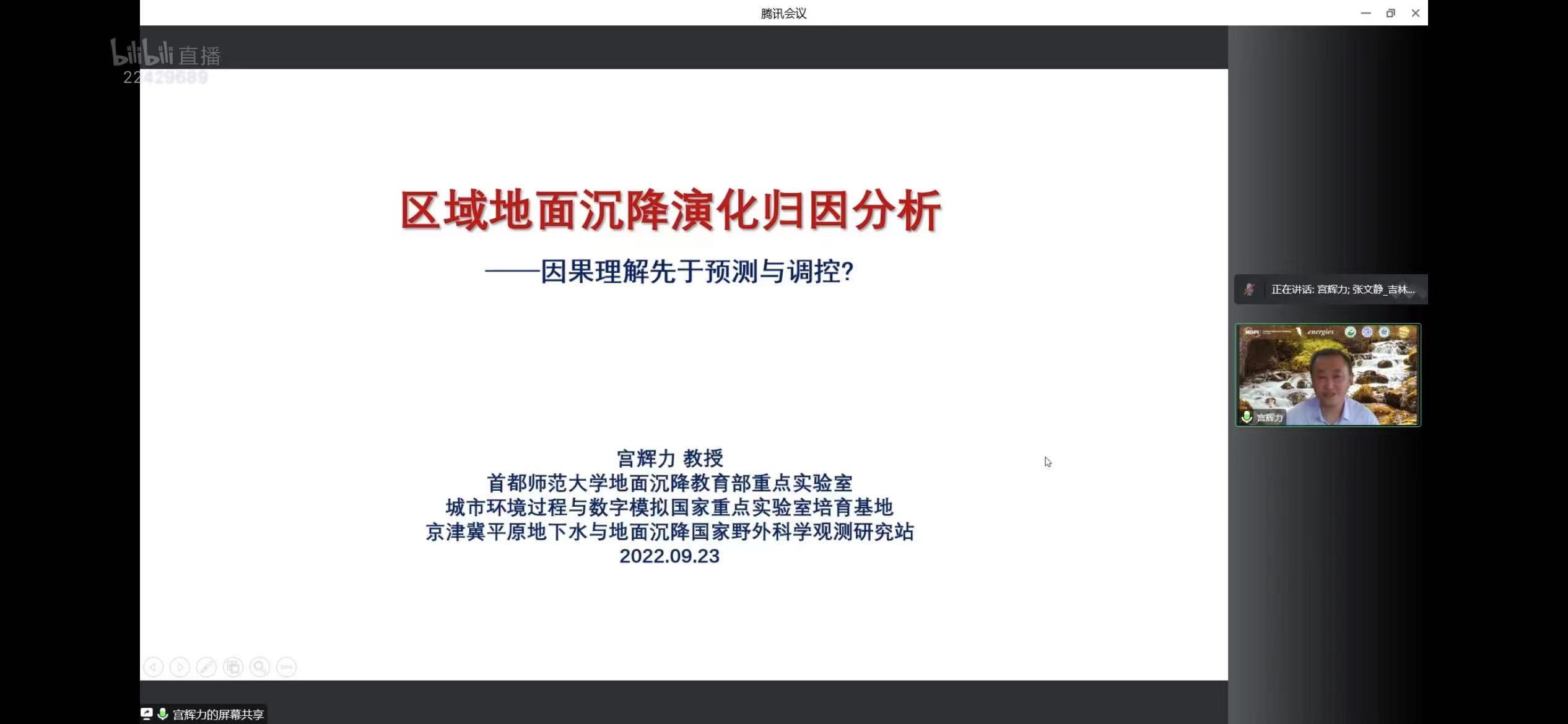 在报告会中,宫辉力教授做了题为“区域地面沉降演化归因分析——因果理解优于预测与调控”的学术报告,重点介绍了区域地面沉降演化的量化归因以及经典模型与 GeoAI 的组合模型发展。王恩志教授做了题为“裂隙岩体多结构多流态渗流模型与数值模拟分析”的学术报告,重点介绍了模拟小尺度岩体地下水渗流的离散网络模型、大尺度岩体地下水渗流的离散-连续组合模型、大孔洞管道多流态模型,以及相关工程案例的模拟分析。戴振学教授做了题为“多尺度裂隙系统中核素运移的尺度效应研究”的学术报告,主要介绍了核素在多尺度裂隙系统中的运移机理和尺度效应方面的研究成果。束龙仓教授做了题为“水文地质概念模型的再认识”的学术报告,以济南泉域岩溶水为例,详细阐述水文地质概念模型包括的边界条件、介质特征和源汇项三个主要方面,并就建立准确的水文地质概念模型提出了宝贵建议。杜新强教授做了题为“三江平原地下水资源与环境的演变特征及趋势分析”的学术报告,以松花江-挠力河流域为典型研究区,对三江平原地下水超采、地下水氮污染以及土壤盐渍化等问题的时空分布特征、成因机制及其在自然和人类活动影响下的演变趋势进行分析和讨论。
