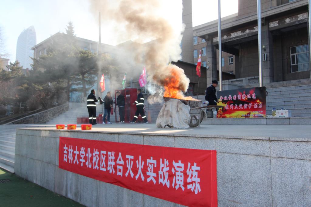 在消防灭火演练中,北区保卫办消防科长唐小兵给参加演练的师生员工们详细讲解和演示了消防面罩的使用和二氧化碳灭火器、干粉灭火器使用方法以及对油锅、床铺、建筑物、液化气罐的灭火方法。参演的师生们分组进行了实际操作灭火演练。