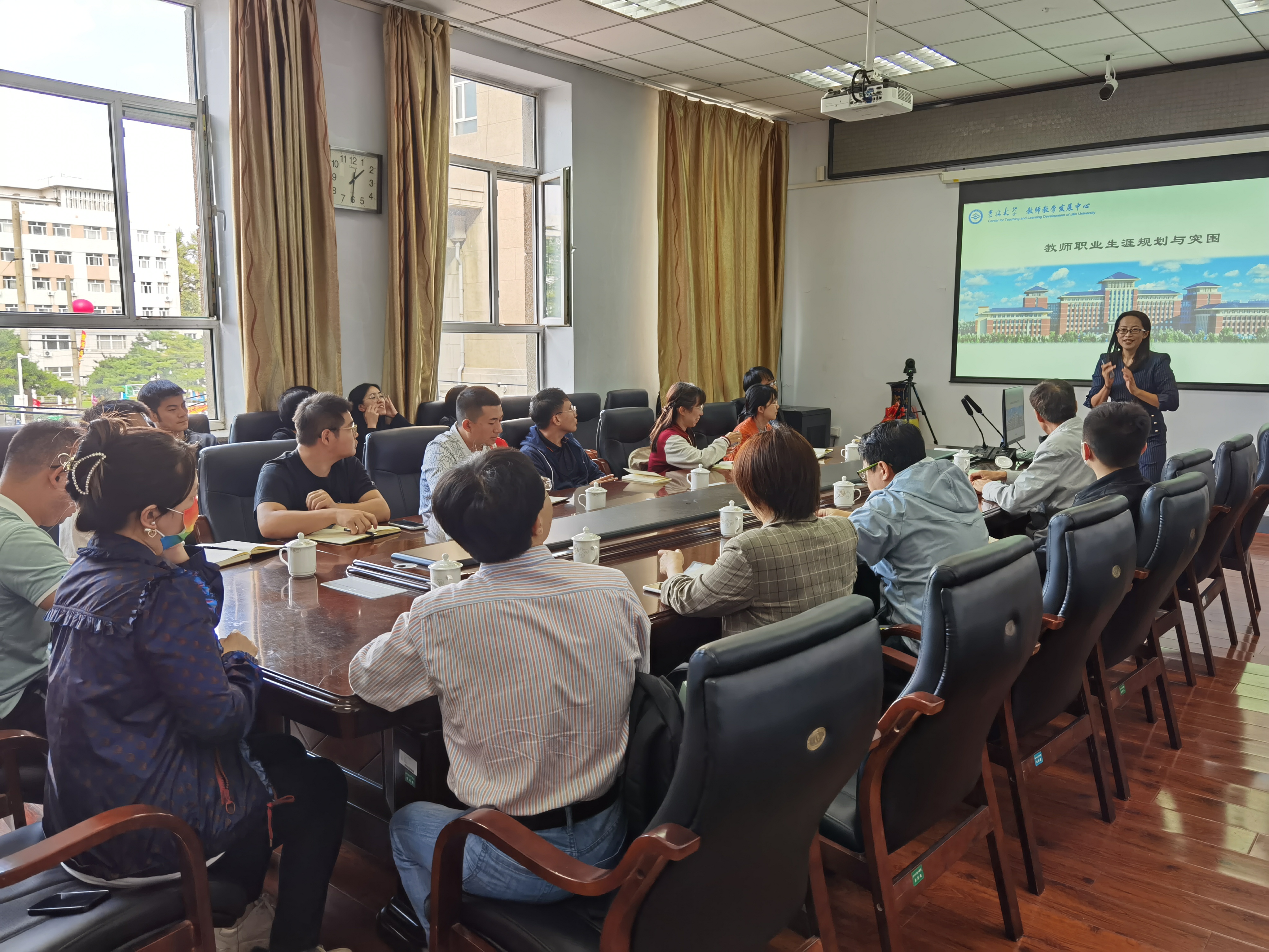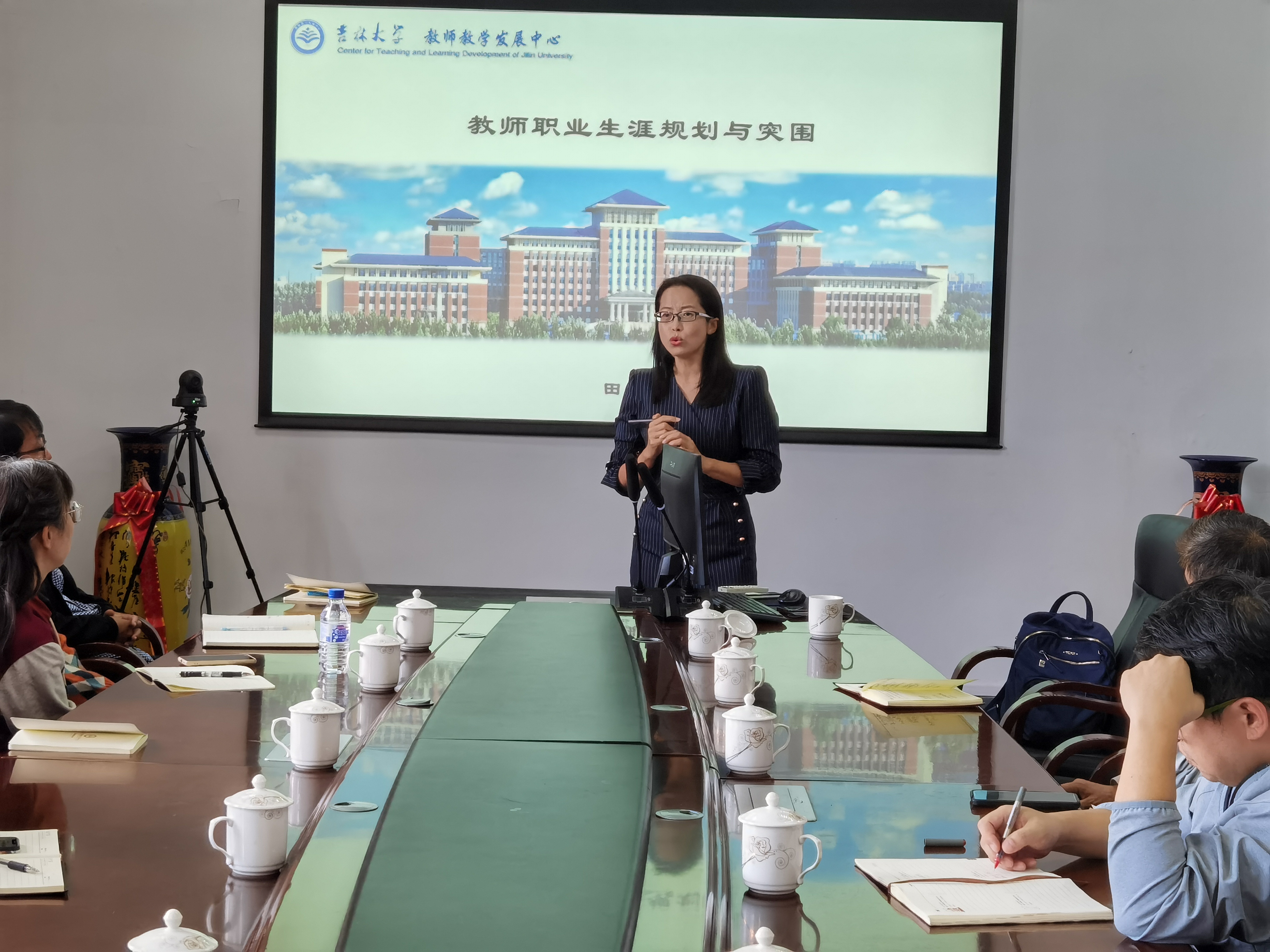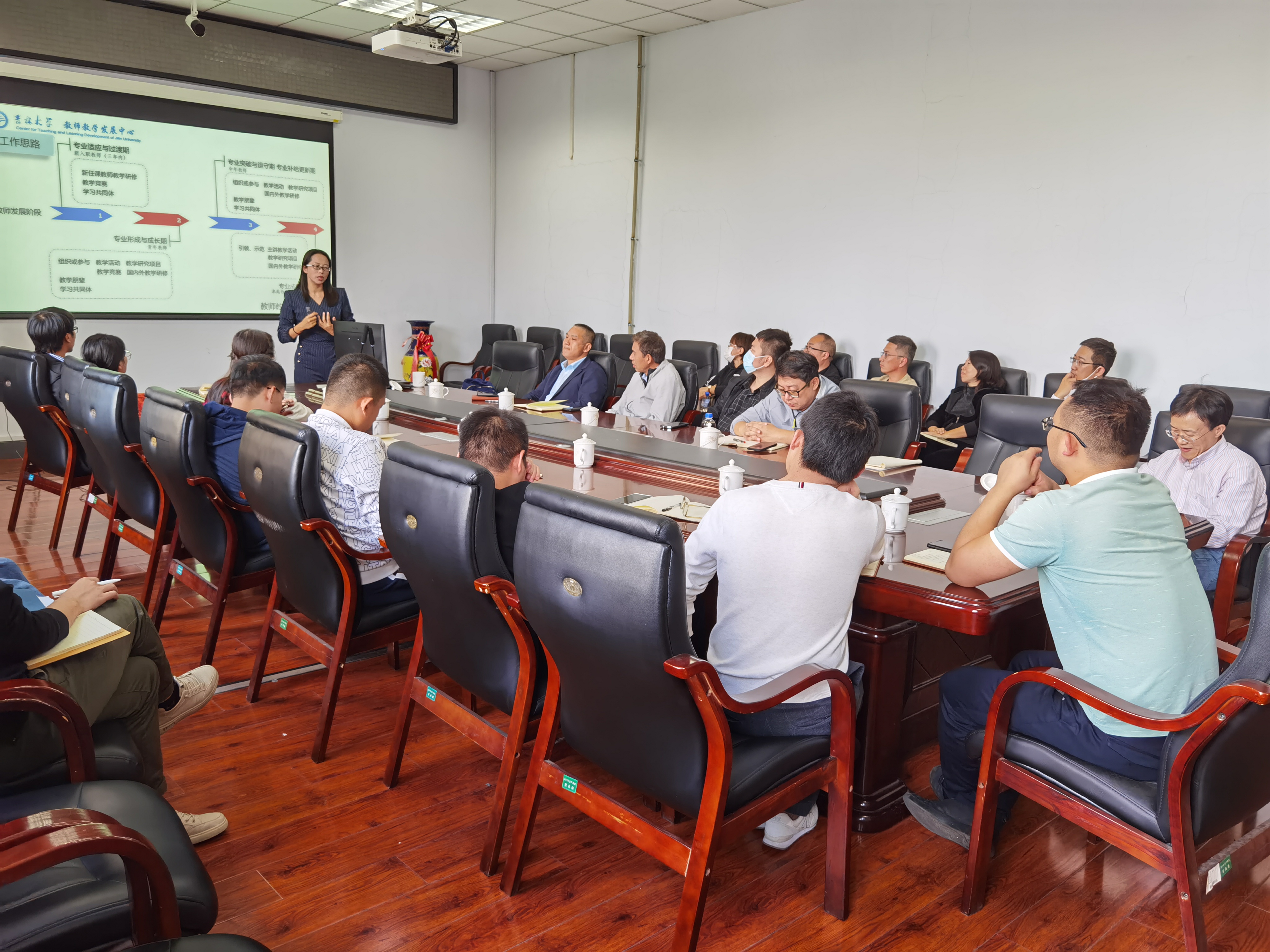 田教授从青年教师职业生涯规划及常见瓶颈,教学名师进阶的五个维度和4+N个层次,教发中心能提供的支持和资助等三个方面向大家介绍了 tikporn 教师教学发展中心的理念。对新入职教师的专业适应与过渡期、青年教师的专业形成与成长期、中年教师的专业突破与退守期、专业补给更新期及卓越教师资深教师的专业成熟期进行了深入解读。