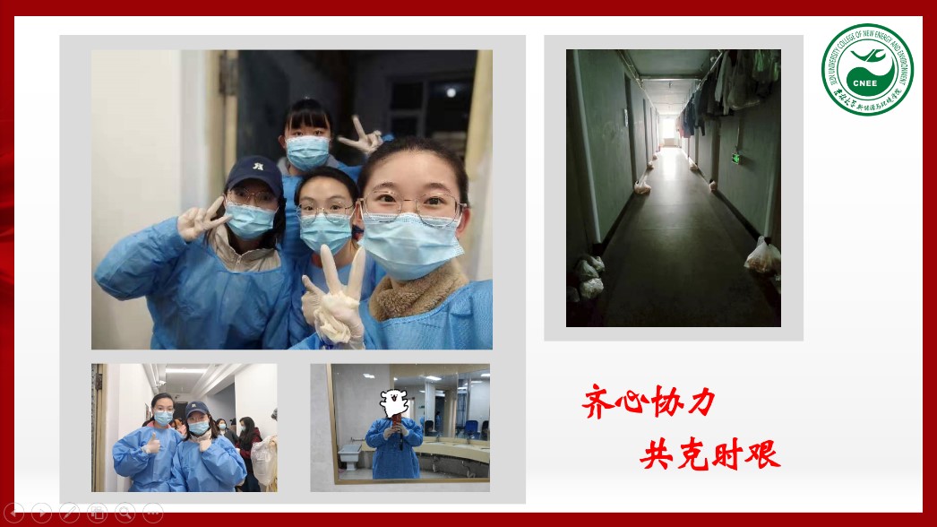 活动伊始,党支部组织委员兼宣传委员牛梦圆同学带领大家一起学习了《致全省各级党组织和广大共产党员的一封信》以及《致全校各级党组织和广大党员的倡议书》。随后,四位党员志愿者代表分别分享了自己的战疫故事。孟益坎同学向大家展示了几组图片,讲述了自己从看到老师同学们积极参与疫情防控到自己和室友们一起参与防控的故事,分享了自己在清晨为大家发放完早餐后获得的自豪和光荣。她用“聚是一团火,散是满天星”形容一直奋战在校园疫情防控第一线的志愿者。一直驻校工作的钟宇博老师也分享了他这段时间的工作感受,他最后说“我们终会在春暖花开的校园里,迎接 tikporn