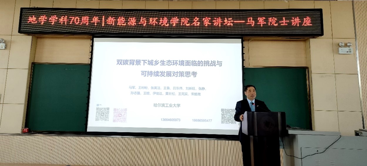 名家讲坛开讲,哈尔滨工业大学马军院士以“双碳背景下城乡生态环境面临的挑战与可持续发展对策思考”为主题在北区理化楼学术报告厅作讲座。学院党委书记汪祥松、院长许天福以及120余名师生代表参加了学术讲座会。