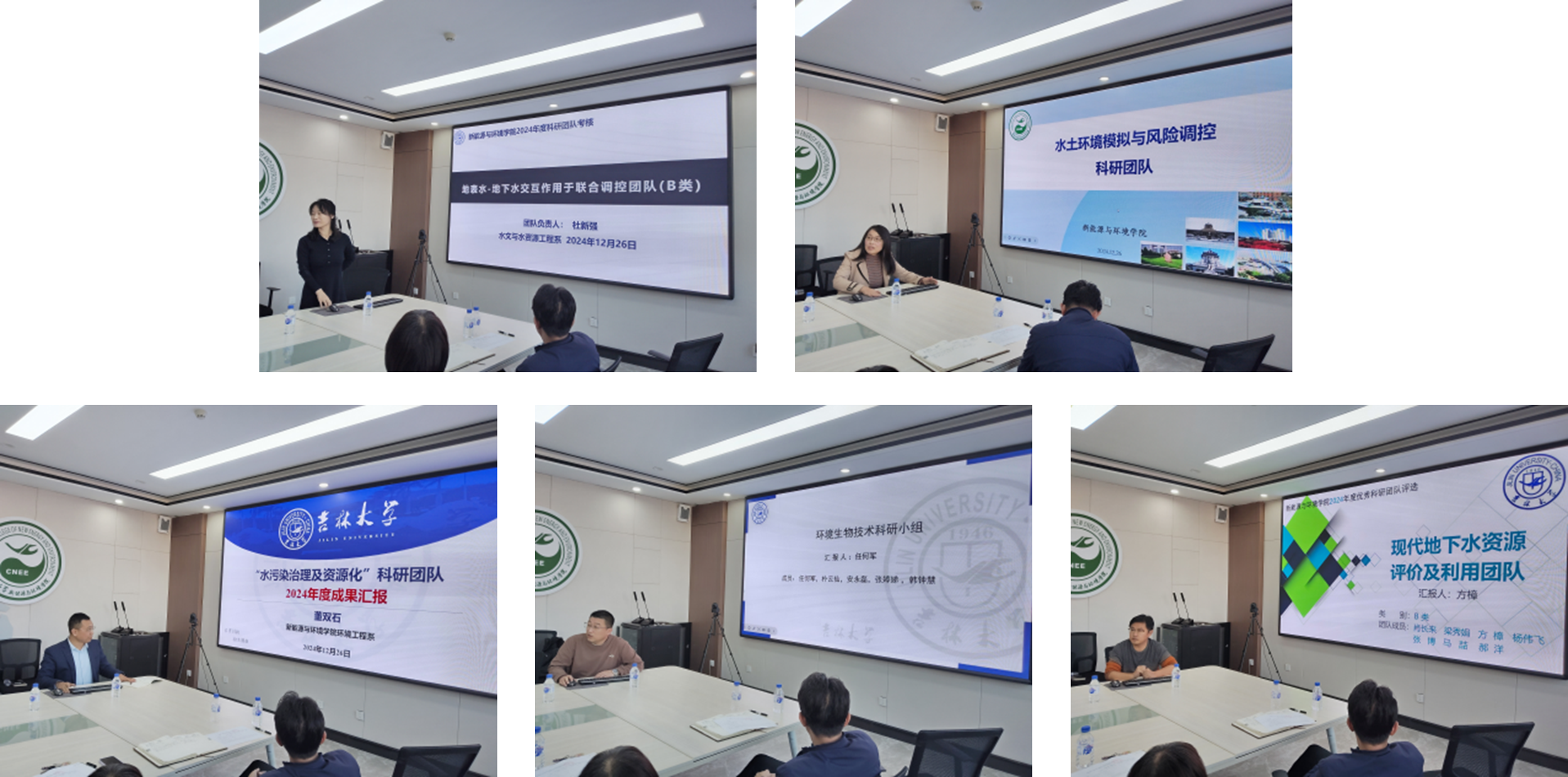 会议全程由副院长董军教授主持。其中,上半场会议各科研团队负责人就团队的科学研究成果、教师人才培养和引进、学科发展贡献、研究生培养等几个方面进行了汇报。经评委打分投票进行排序,评选出优秀A类科研团队一等奖一组:地下水环境演变与调控科研团队;二等奖一组:污染场地控制与修复科研团队;三等奖两组:地下新能源开发的渗流和环境问题研究科研团队、水土环境化学科研团队。评选出优秀B类科研团队一等奖一组:水污染治理与资源化科研团队;二等奖一组:水土环境模拟与风险调控科研团队;三等奖三组:现代地下水资源评价及利用科研团队、地表水-地下水交互作用与联合调控科研团队、环境生物技术科研团队。
