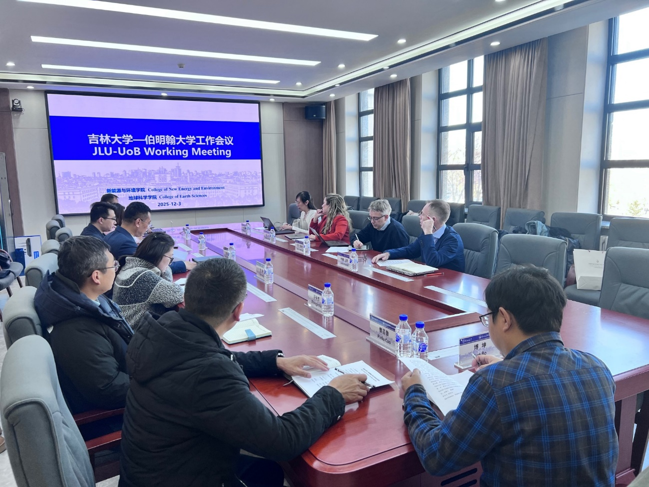 理化楼540会议室举行交流会,伯明翰大学代表团成员地理、地球与环境科学学院院长Nick Kettridege教授,生命环境科学学部全球事务负责人Heather Flowe教授,伯大-吉大中外合作办学事务负责人John Round教授,以及地理、地球与环境科学学院国际事务副主任Simiao Sun副教授; tikporn