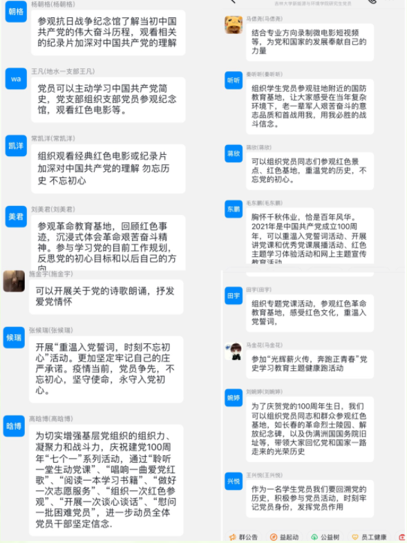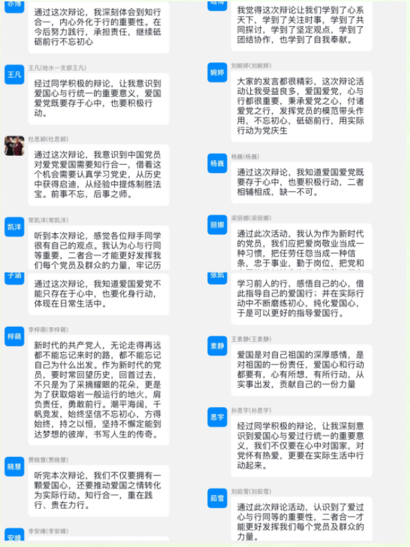 线上党员也积极参与,在研究生党员钉钉群内发表自己的观点及对本次辩论活动的感想。最后,李野老师对本次活动进行了总结。