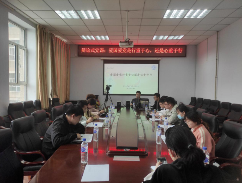 开展庆祝建党100周年“求实”沙龙第1期:辩论式党课“爱国爱党行重于心,还是心重于行”的研究生活动。活动采用参赛人员线下辩论,观众线上参与的形式进行。学院党委副书记温卓老师和研究生专职辅导员李野老师莅临指导。活动由辩论赛主席崔庭晨主持,参赛学生有:程澍、师盛坤、田琳、王鑫垚、张飞宇、贾璐、韩继博、盘惠林等。